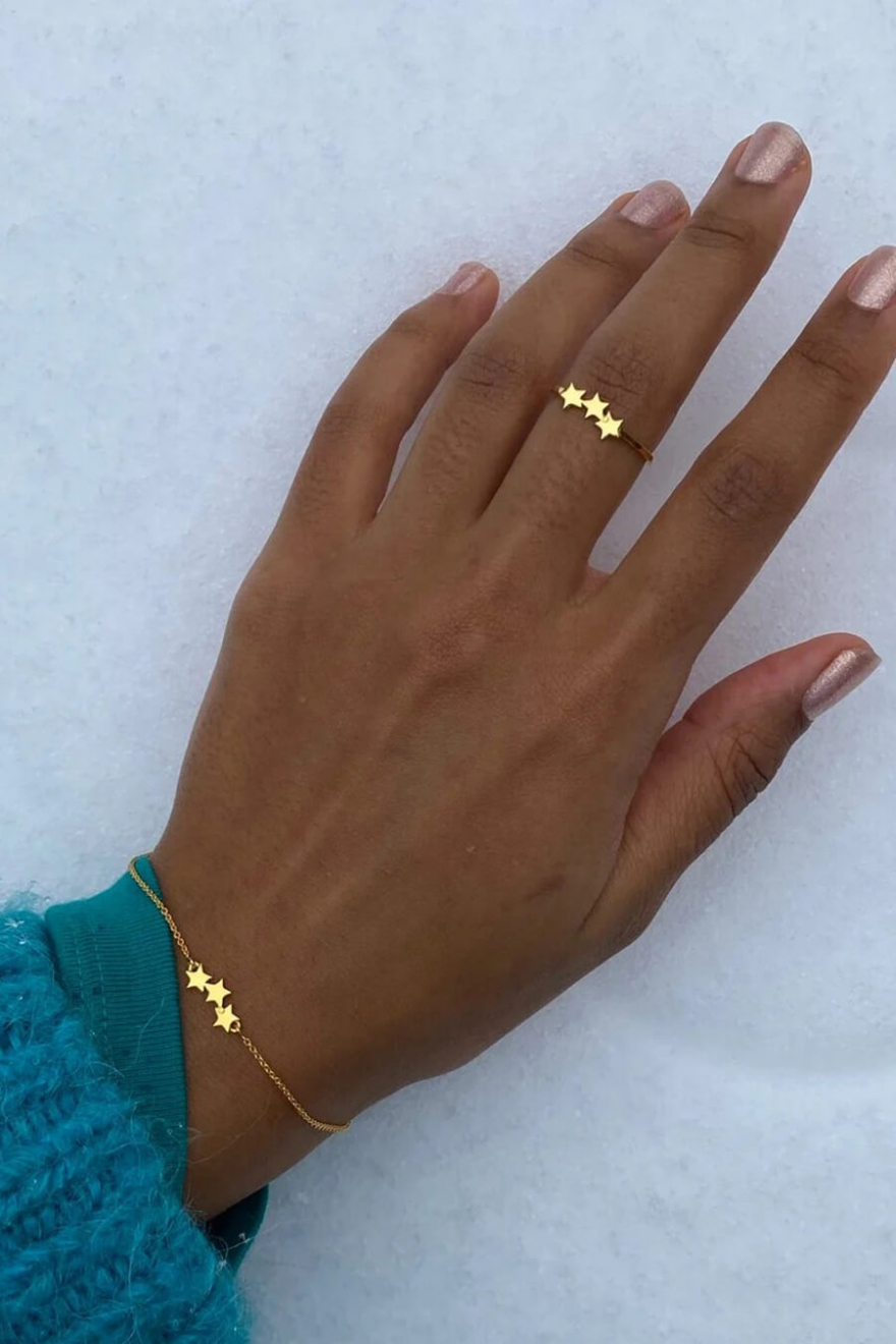 SYSTER P | Snap Bracelet Triple Star Plain, Gold | Jewelry - Fo