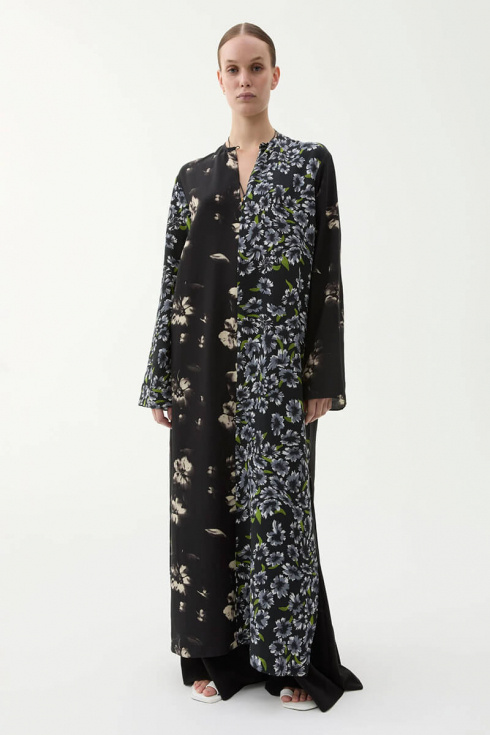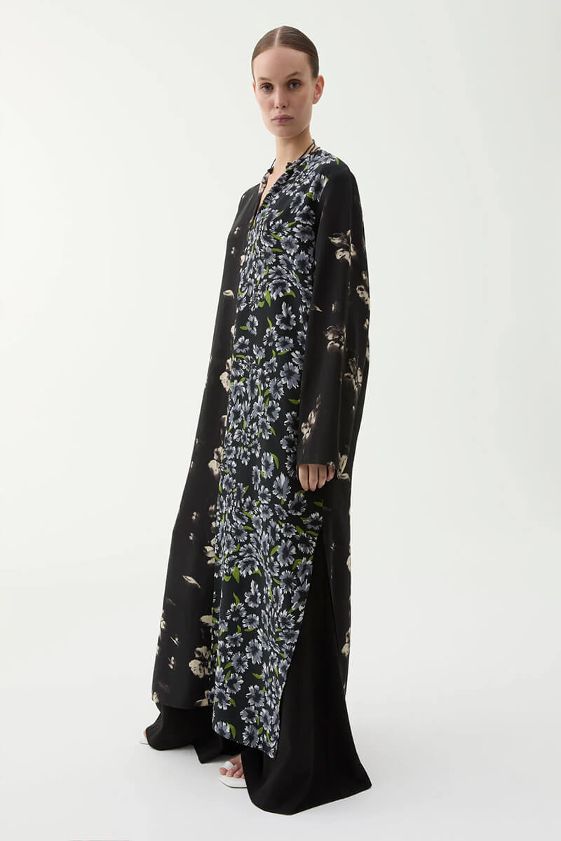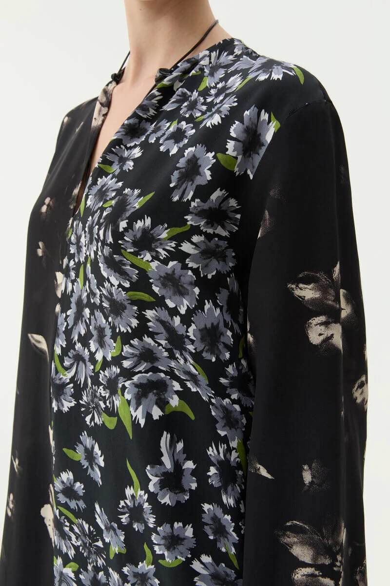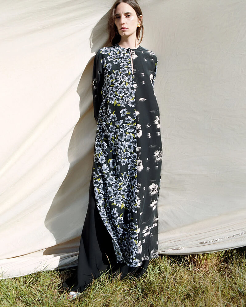 The minimalist shape of the Sorrento dress from Rodebjer creates a considered canvas for a medley of floral prints.Crafted from a blend of silk and viscose, the long-sleeved design falls loosely down the figure, and is detailed with a keyhole neckline.