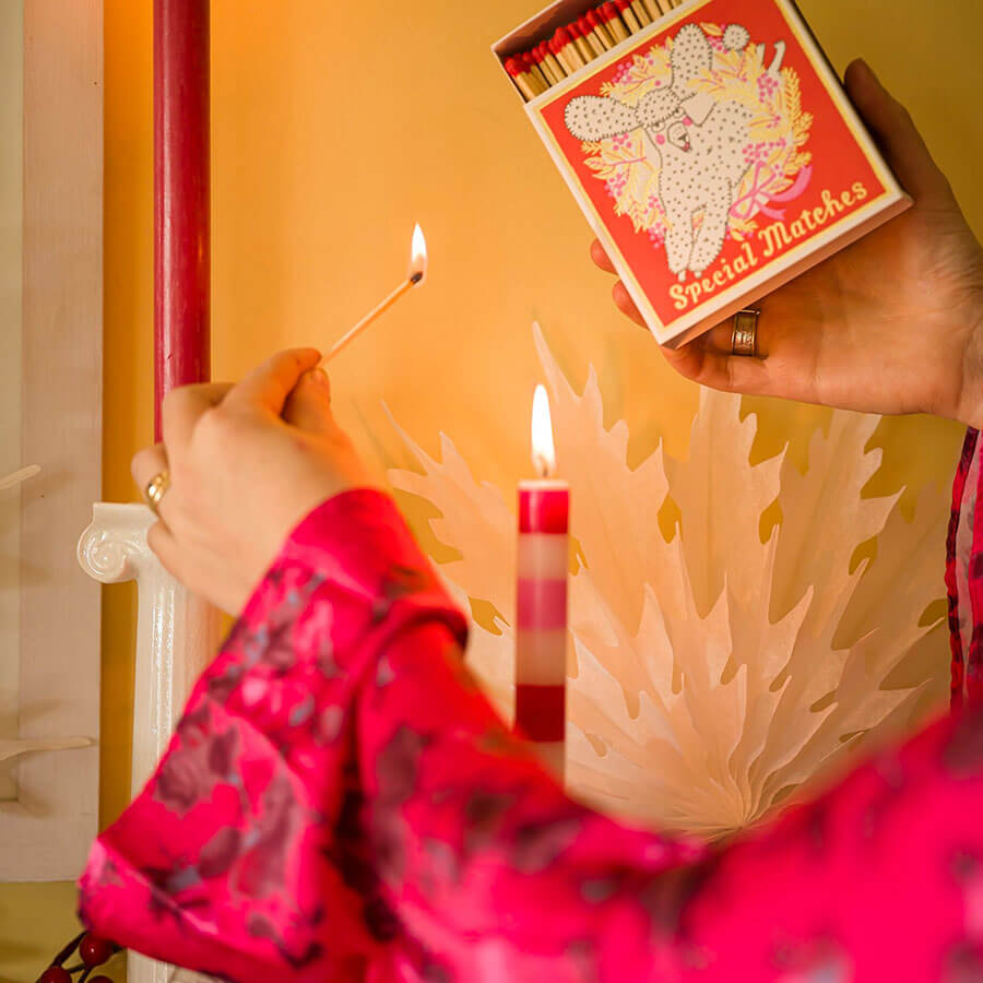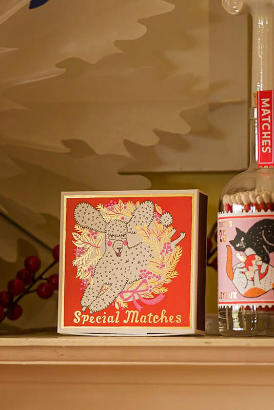 Matchbox printed on a vintage windmill press with gold detailing and about 125 matches from Archivist.