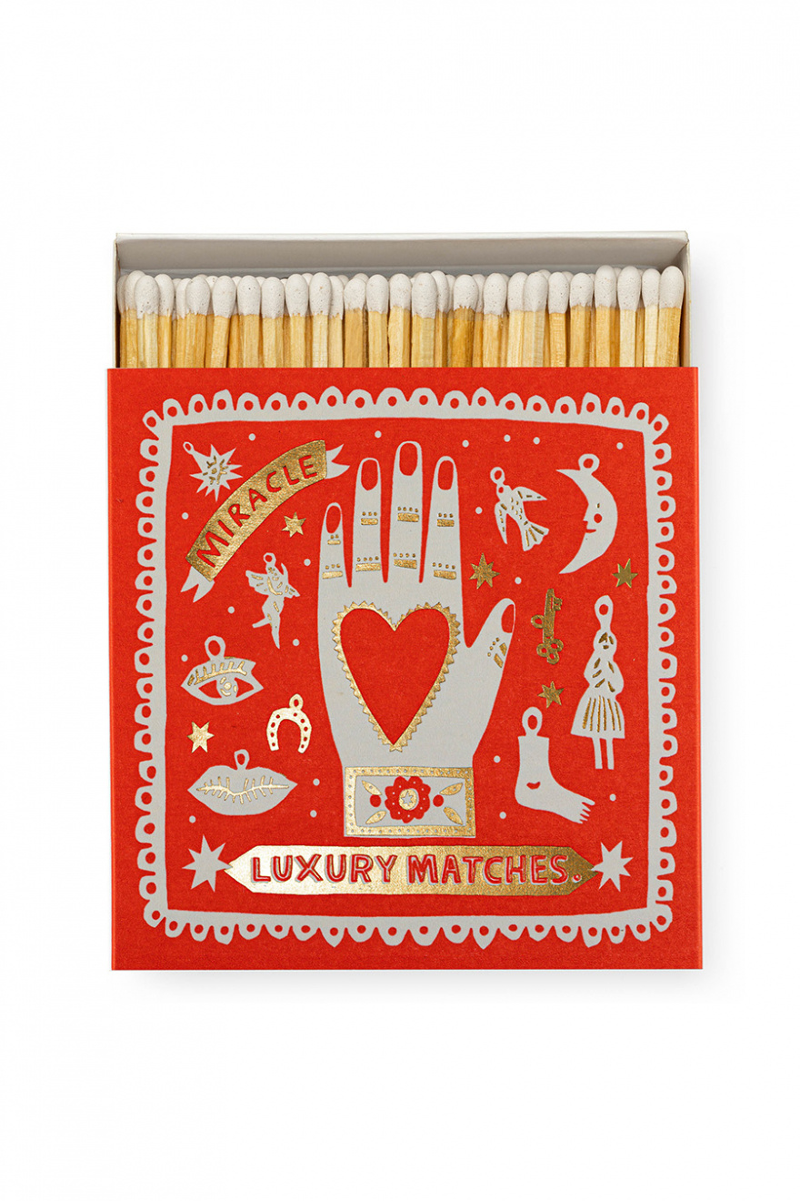 Matchbox printed on a vintage windmill press with gold detailing and about 125 matches from Archivist.- Contains about: 125 matches