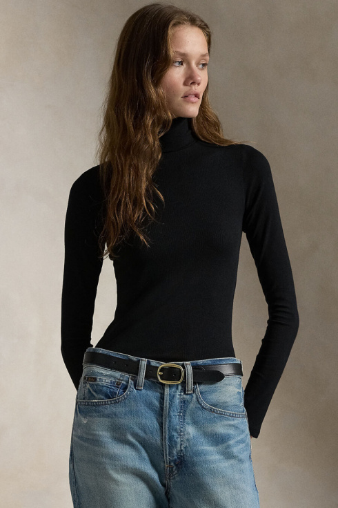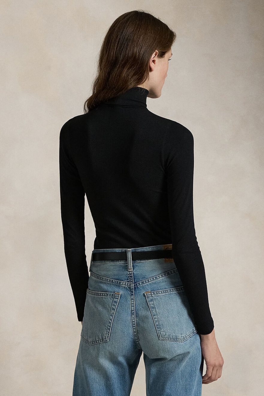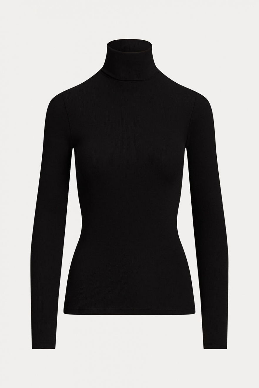 Stretch Ribbed Turtleneck, Polo Black