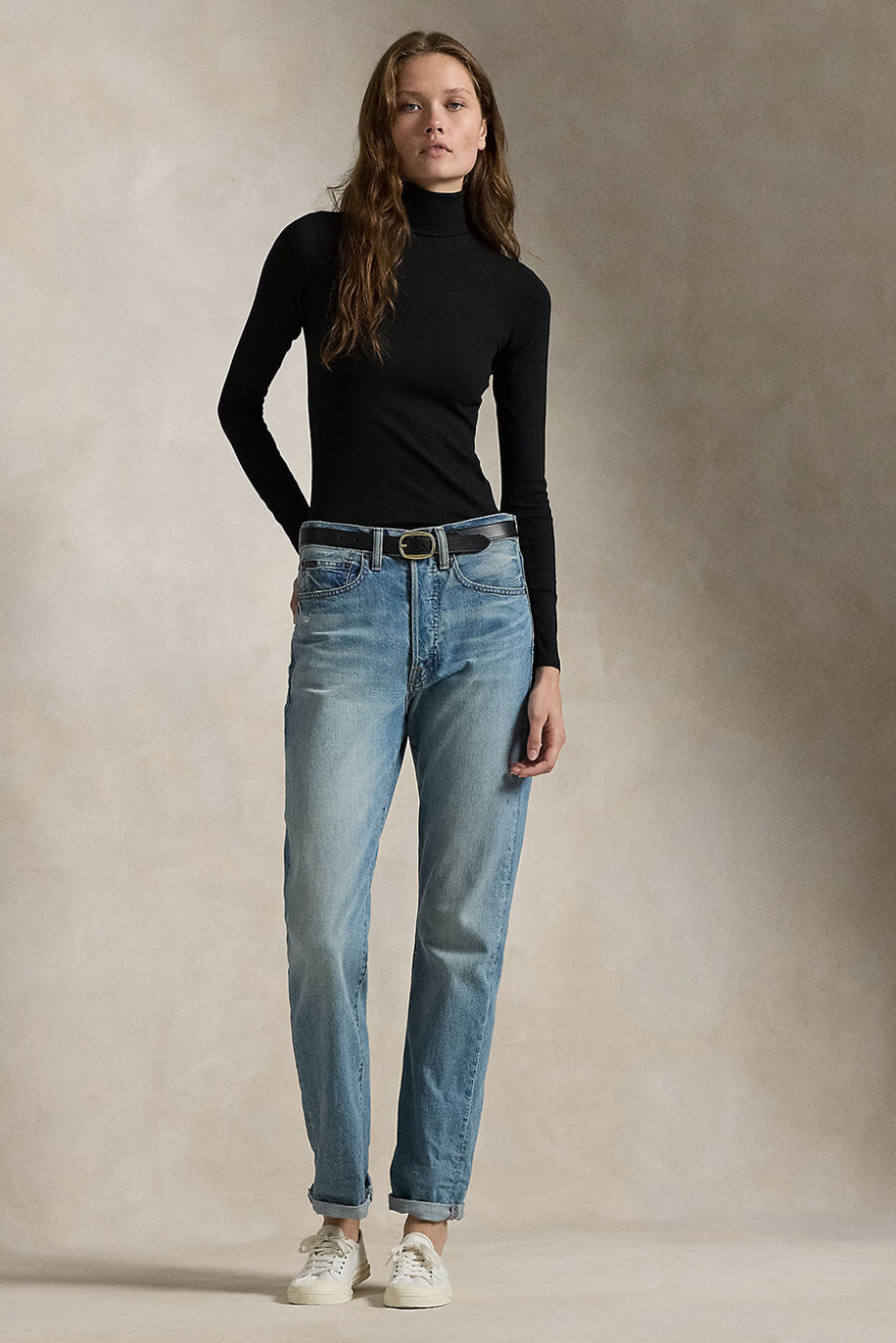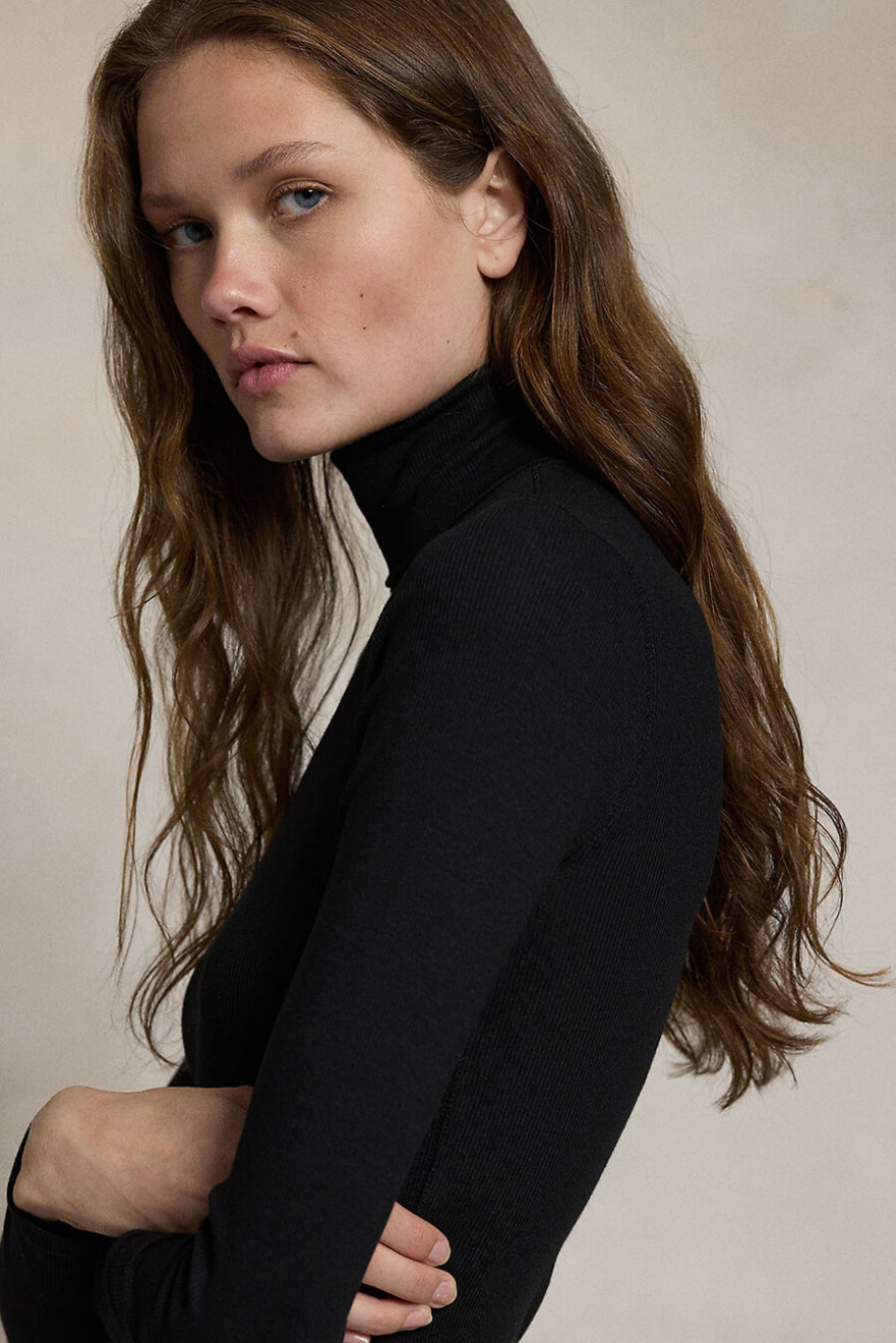 A black top with a polo collar in a slim fit is a timeless garment that combines elegance and style. Perfect for any occasion - whether you're dressing up or down your look.Slim ribbed top in a cotton blend with a polo collar, slim fit, long sleeves and a small embroidered logo from Polo Ralph Lauren.