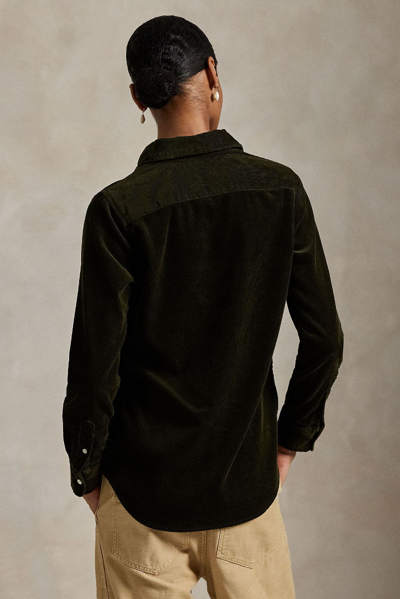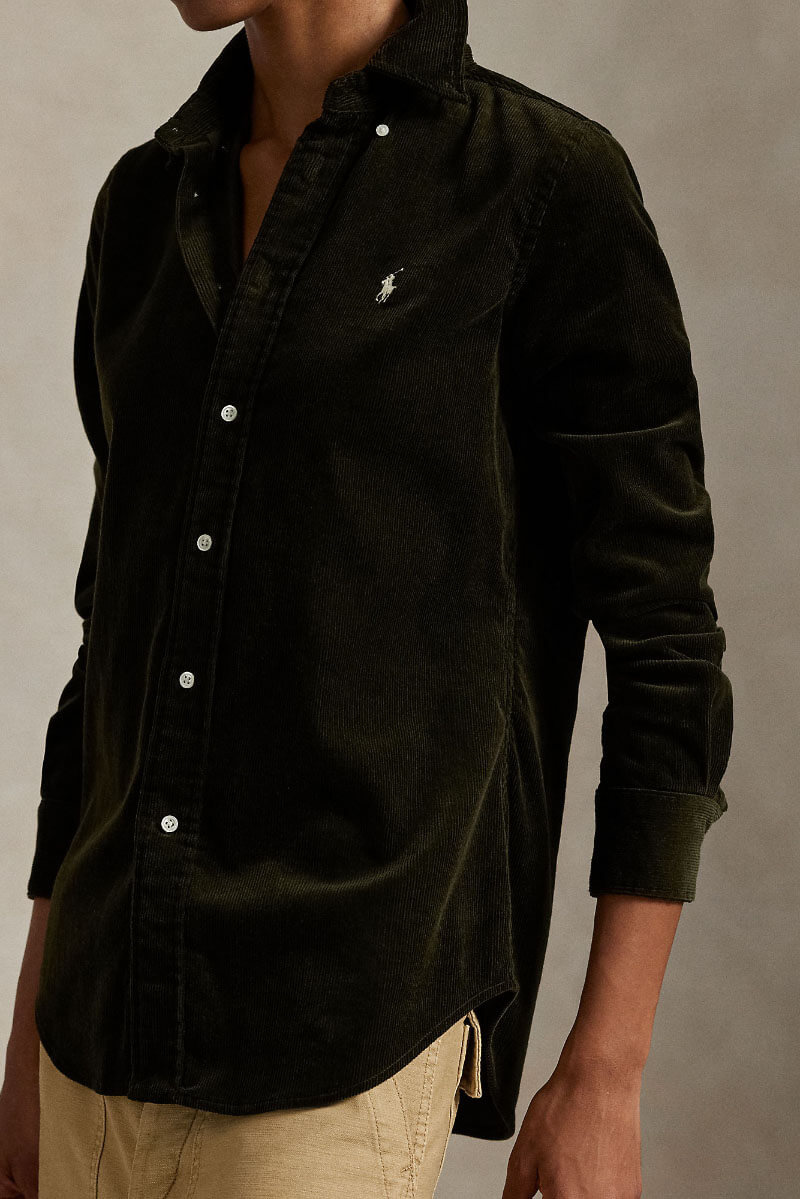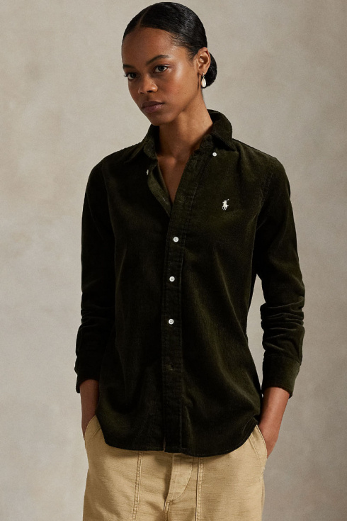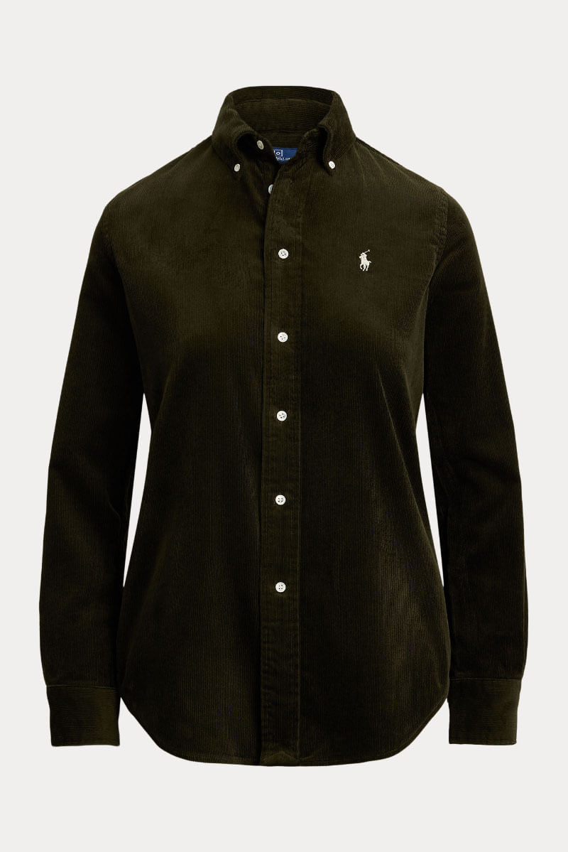 Fall's most casually elegant piece - a corduroy shirt! Style with jeans and boots for everyday simplicity, or a skirt and high boots for a more sophisticated look.Corduroy shirt in a stretchy cotton blend with button down collar, embroidered logo on the front, button closure and slim fit from Polo Ralph Lauren.