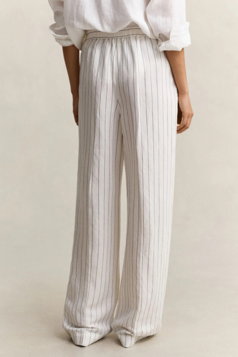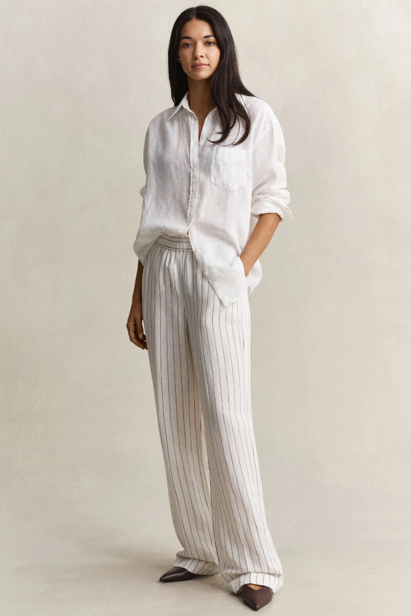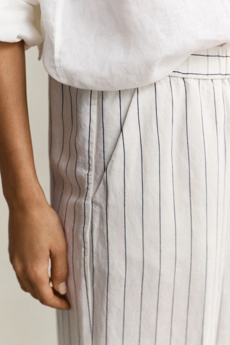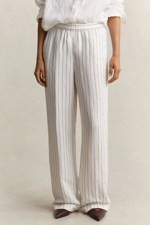 Striped linen trousers with a mid-rise waist - a cool and stylish choice for any occasion. The relaxed fit makes them perfect for a casual day or evening. Pair with a shirt or top for a simple, sophisticated look.Trousers in a soft linenblend with relaxed fit, straight legs, mid waist, pockets at the sides and elastic waistband from Gant.