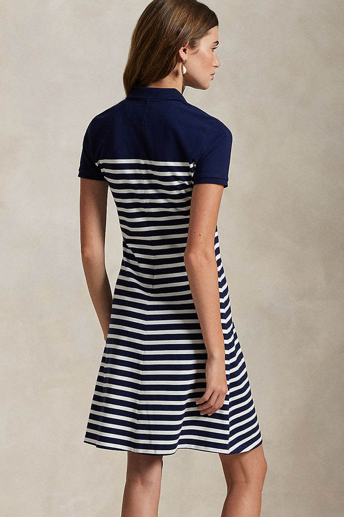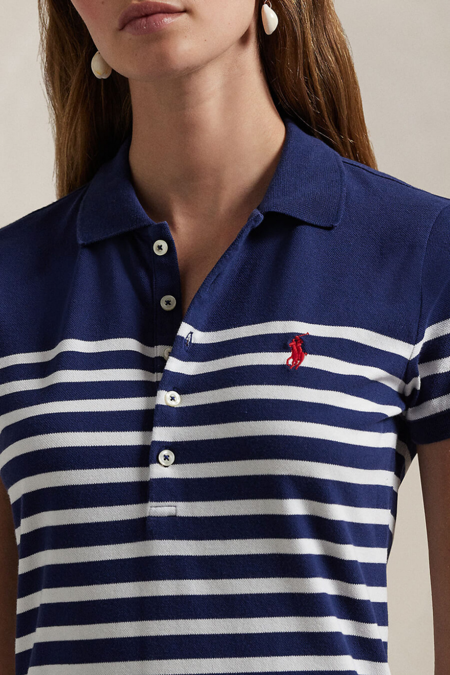 Sail through everyday life in this striped dress - a perfect blend of casual chic and nautical classic. With a soft fit and timeless design, it's ideal for everything from beach walks to city hangouts. Style with ballerinas for an elegant look!Pique dress with buttons front, small embroidered logo, A-shaped, short sleeves and knee-length from Polo Ralph Lauren.