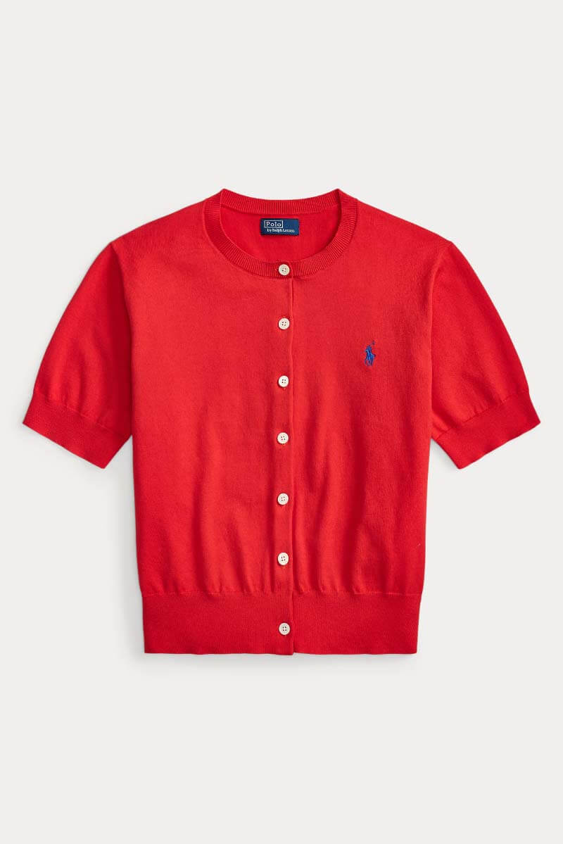 This lightweight cotton-blend cardigan combines a relaxed shape through the body with a gently fitted hem for a refined finish. It features a classic crew neckline and is accented by our signature embroidered Pony at the left chest.