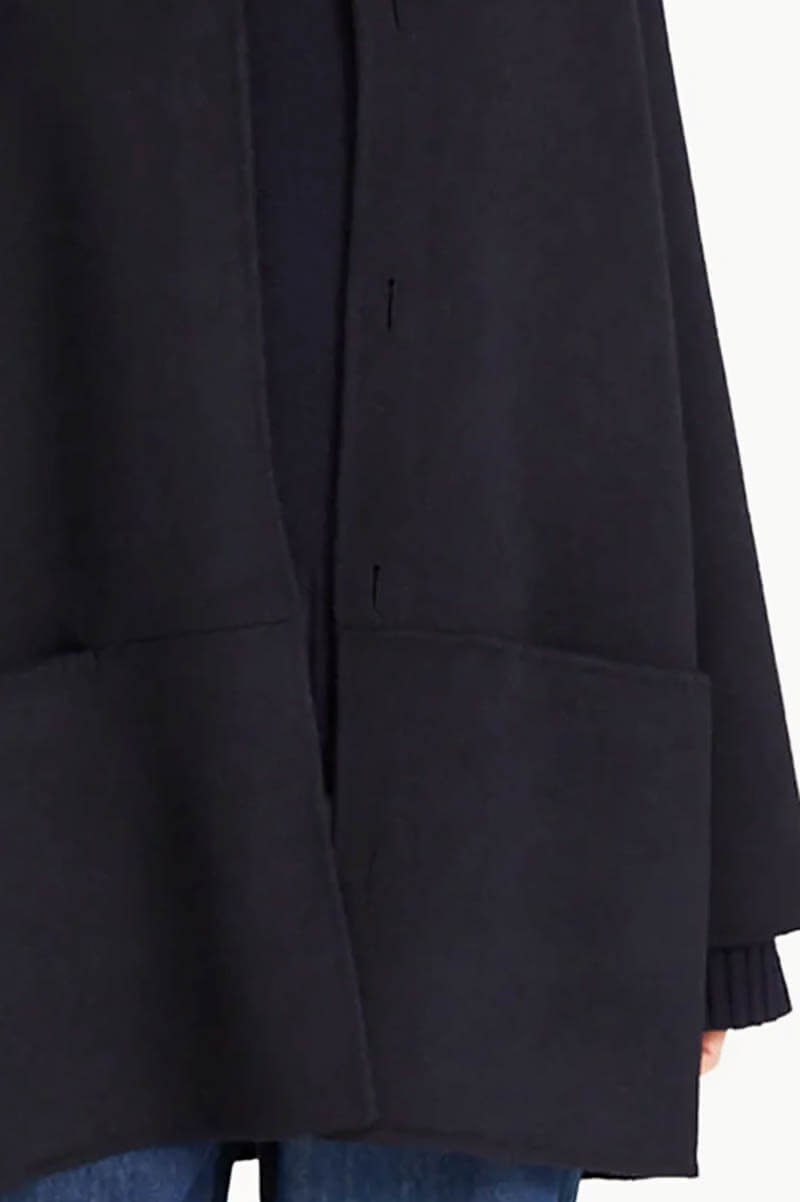 The hidden closure with five inside buttons enhances the minimalist look, while the discreet side-seam pockets add a practical yet refined finish.