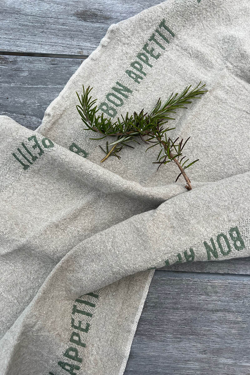 A tea towel in 100% French linen, where every thread breathes timeless elegance and thoughtfulness. Woven in France with bon appétit woven in – as much a statement as an invitation.Hang it casually over a kitchen door or let it become part of the table setting for a weekend brunch. It gives the kitchen the feeling of a French bistro, or a country kitchen with open shutters and the scent of freshly baked bread. Stylish, luxurious and functional – for those who love to set the table with feeling.