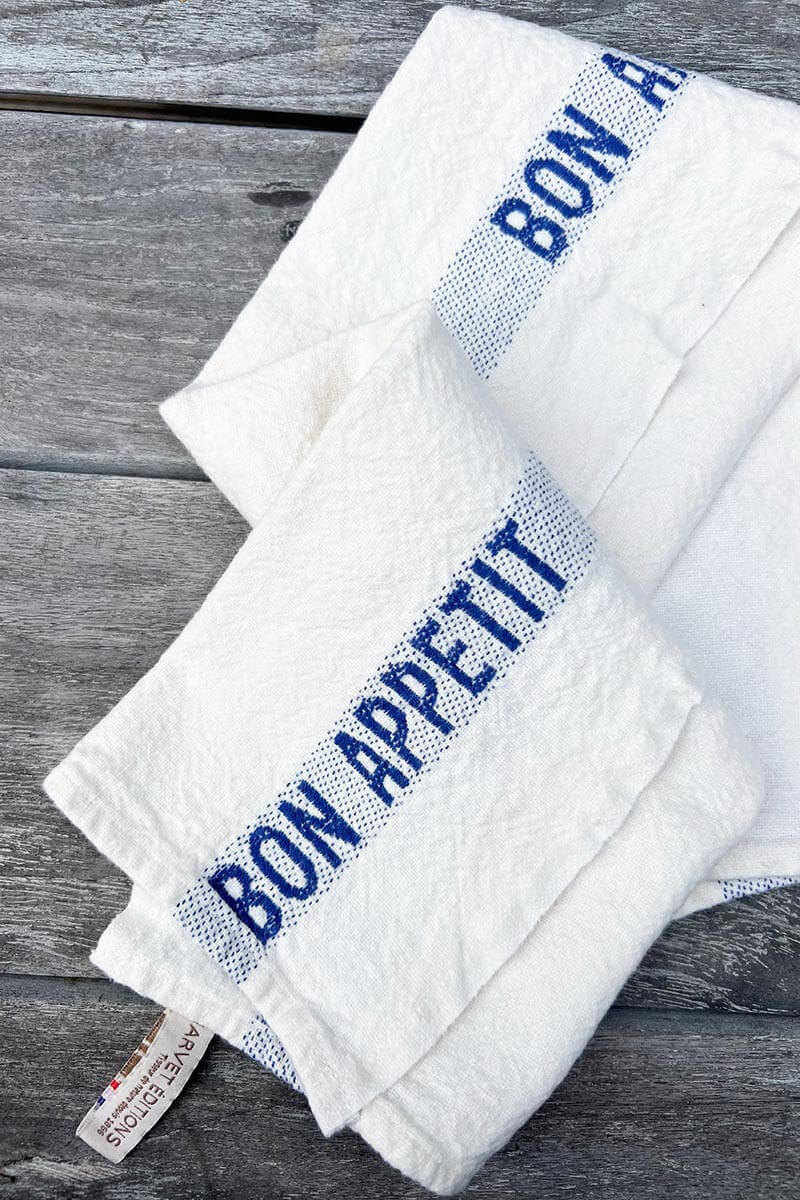 A tea towel in 100% French linen, where every thread breathes timeless elegance and thoughtfulness. Woven in France with bon appétit woven in – as much a statement as an invitation.Hang it casually over a kitchen door or let it become part of the table setting for a weekend brunch. It gives the kitchen the feeling of a French bistro, or a country kitchen with open shutters and the scent of freshly baked bread. Stylish, luxurious and functional – for those who love to set the table with feeling.