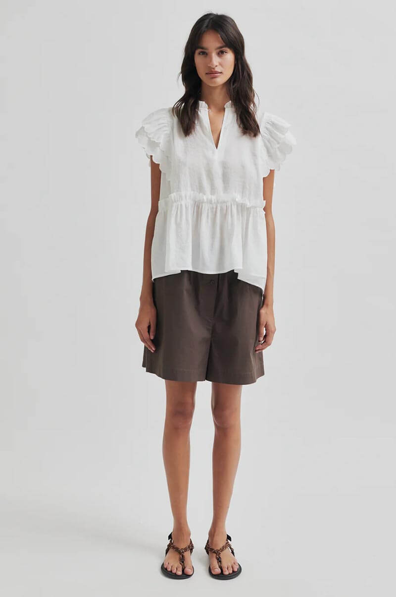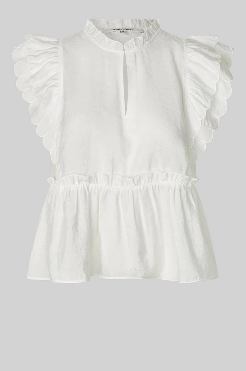 Pair this lovely blouse with a pair of high-waisted jeans and a belt for everyday wear, or a silky skirt and heels for evening wear. Add a pair of statement earrings – preferably in gold – and you're ready for whatever the day brings.Top in a soft modal blend with a relaxed fit, v-neck, ruffle details at the neckline, shoulders and waist from Second Female.