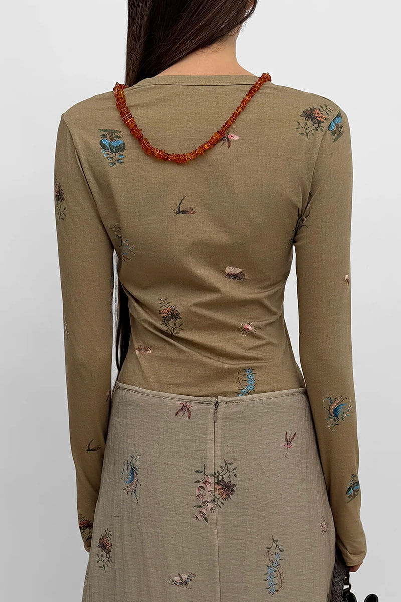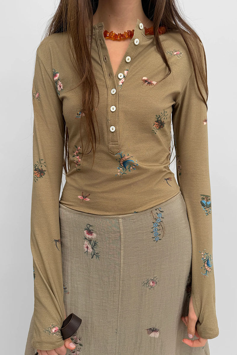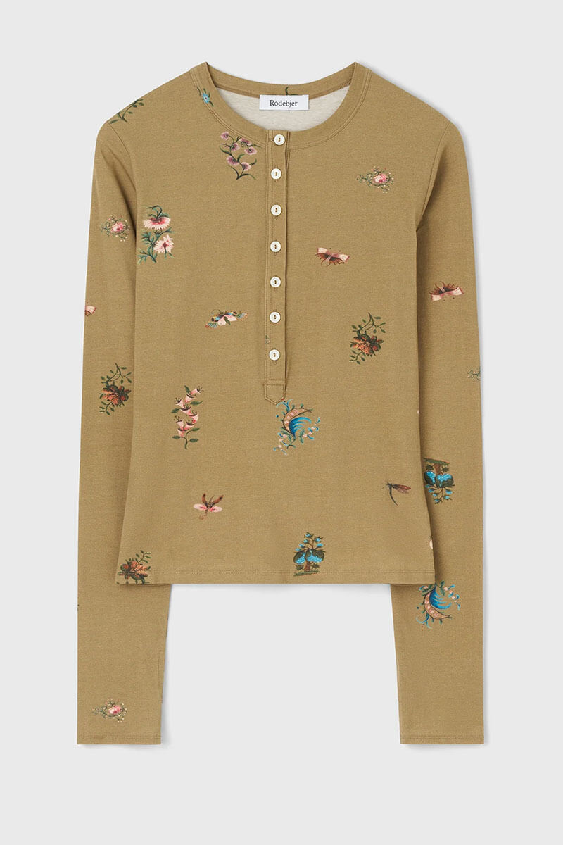 Tight fit tricot top from Rodebjer, referencing a classic Henley shirt. Round neckline and placket with buttons along front.• Tight fit , size up for a regular fit