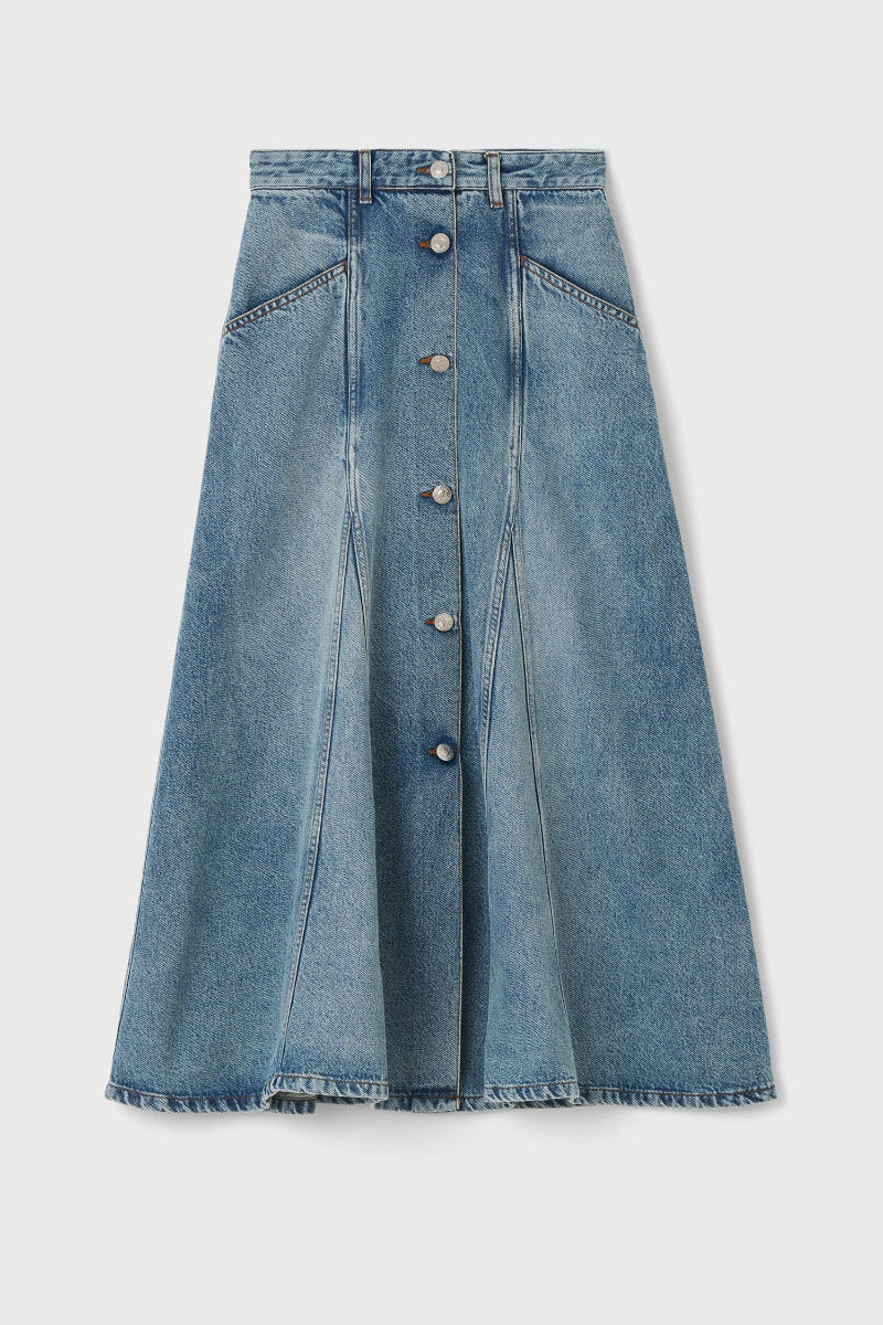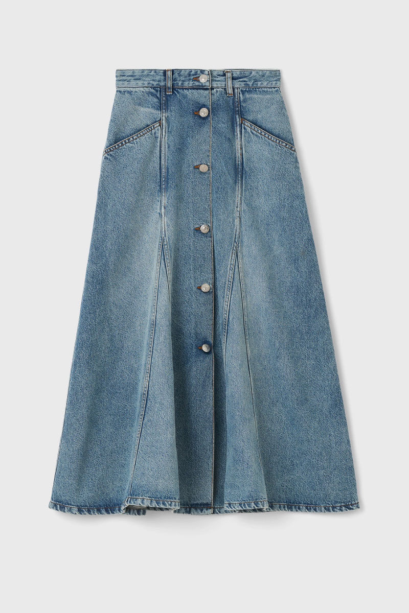 A characterful denim skirt that pays homage to the iconic aesthetics of the 1970s. The soft blend of cotton and lyocell gives the skirt a beautiful drape and a comfortable feel, while the front button row creates a lengthening silhouette that works perfectly with a simple tee or an elegant blouse.