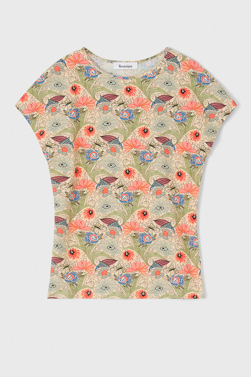 An everyday layering print piece referencing dance wear. Tight fitting silhouette in tricot with cap sleeves.• Cap sleeves