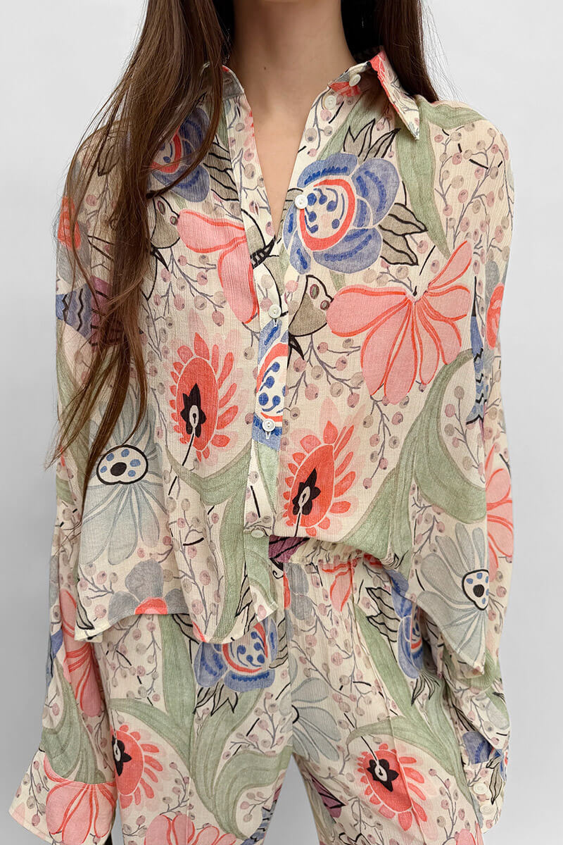 • Cropped length, full sleeve with shirt cuff, Oxford collar and buttons along front