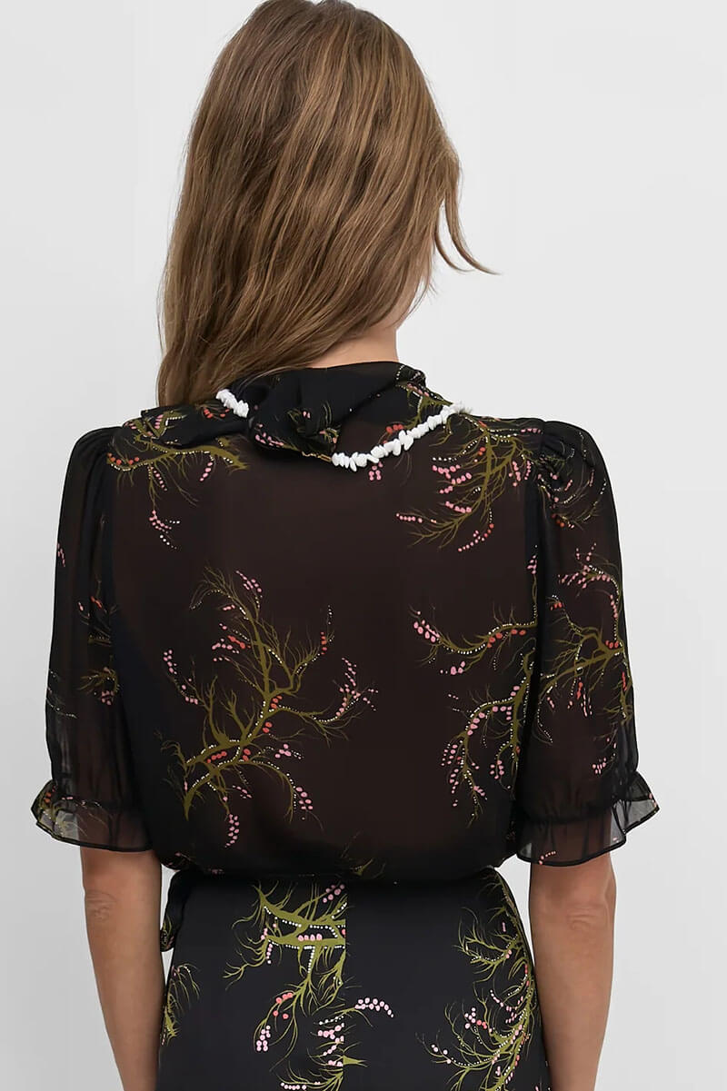 The Xandria flounce blouse, Black/Olive