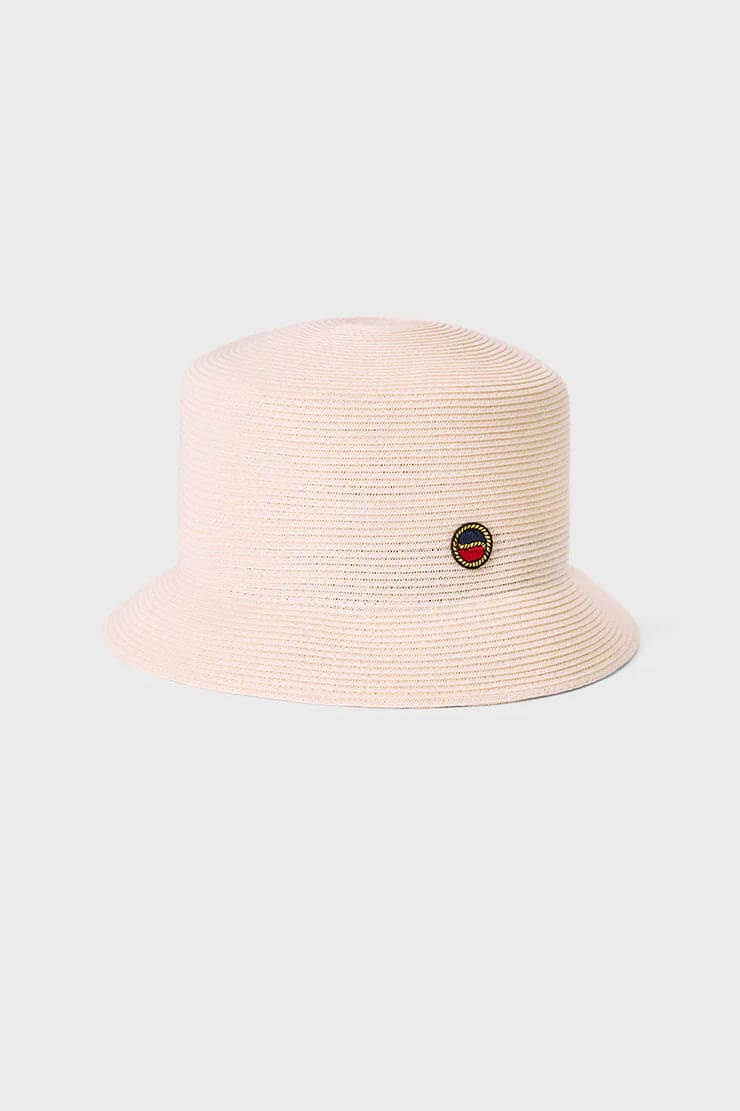 Tina Paper Straw Bucket Hat is made of 100% paper straw material. This classic bucket hat has a slanted brim and is detailed with the Busnel logo badge. This hat is the perfect accessory for any outfit and will shade you from the sun.
