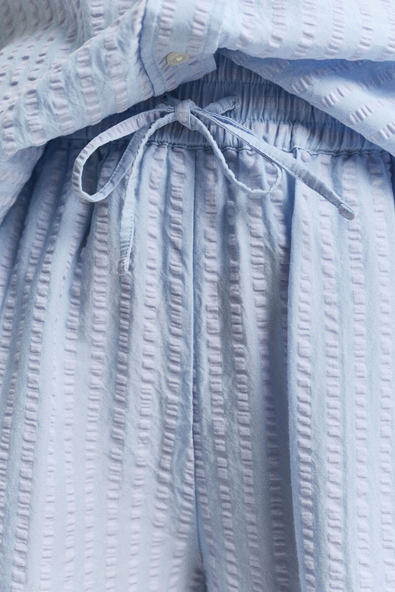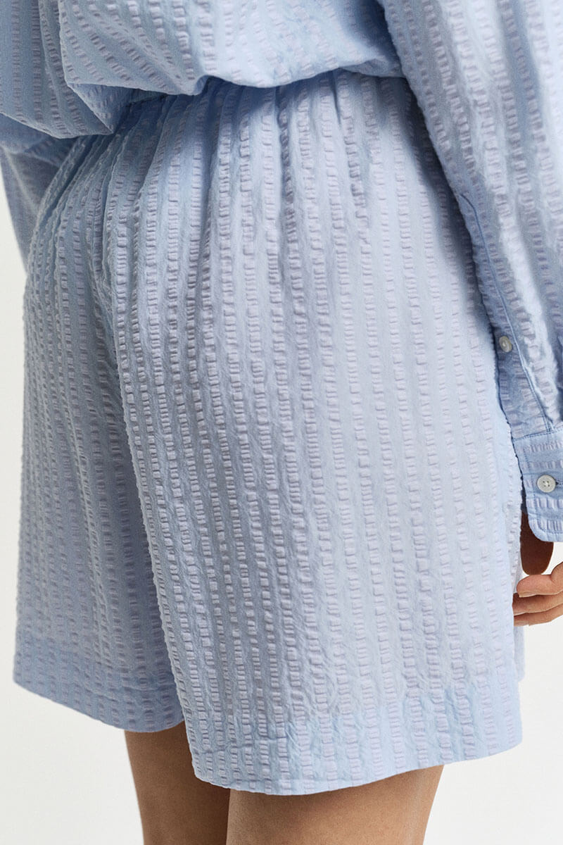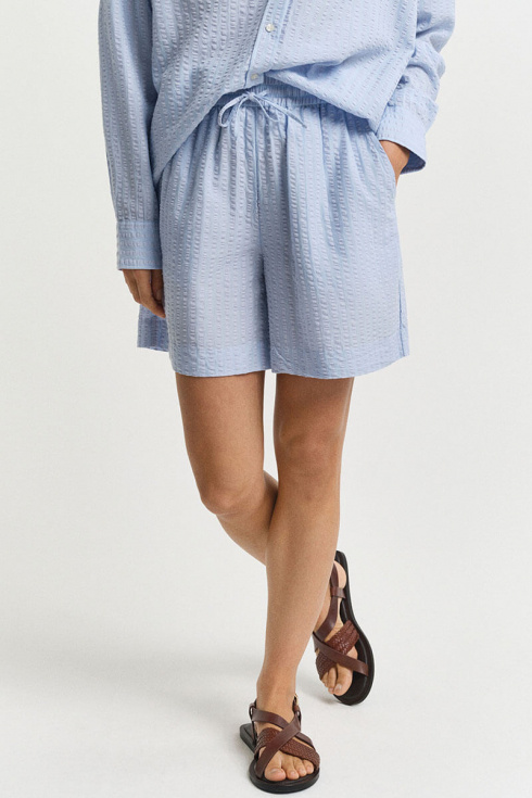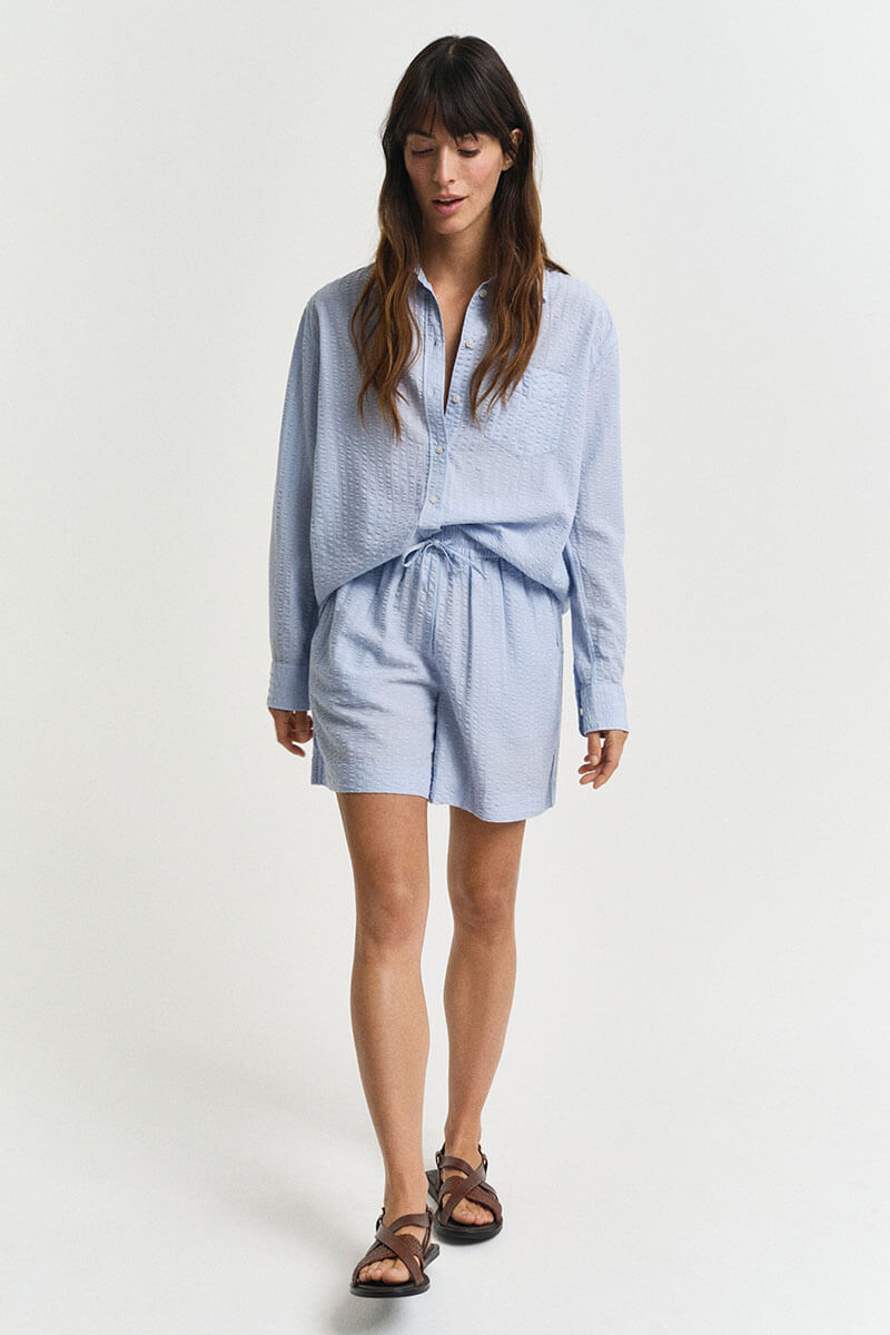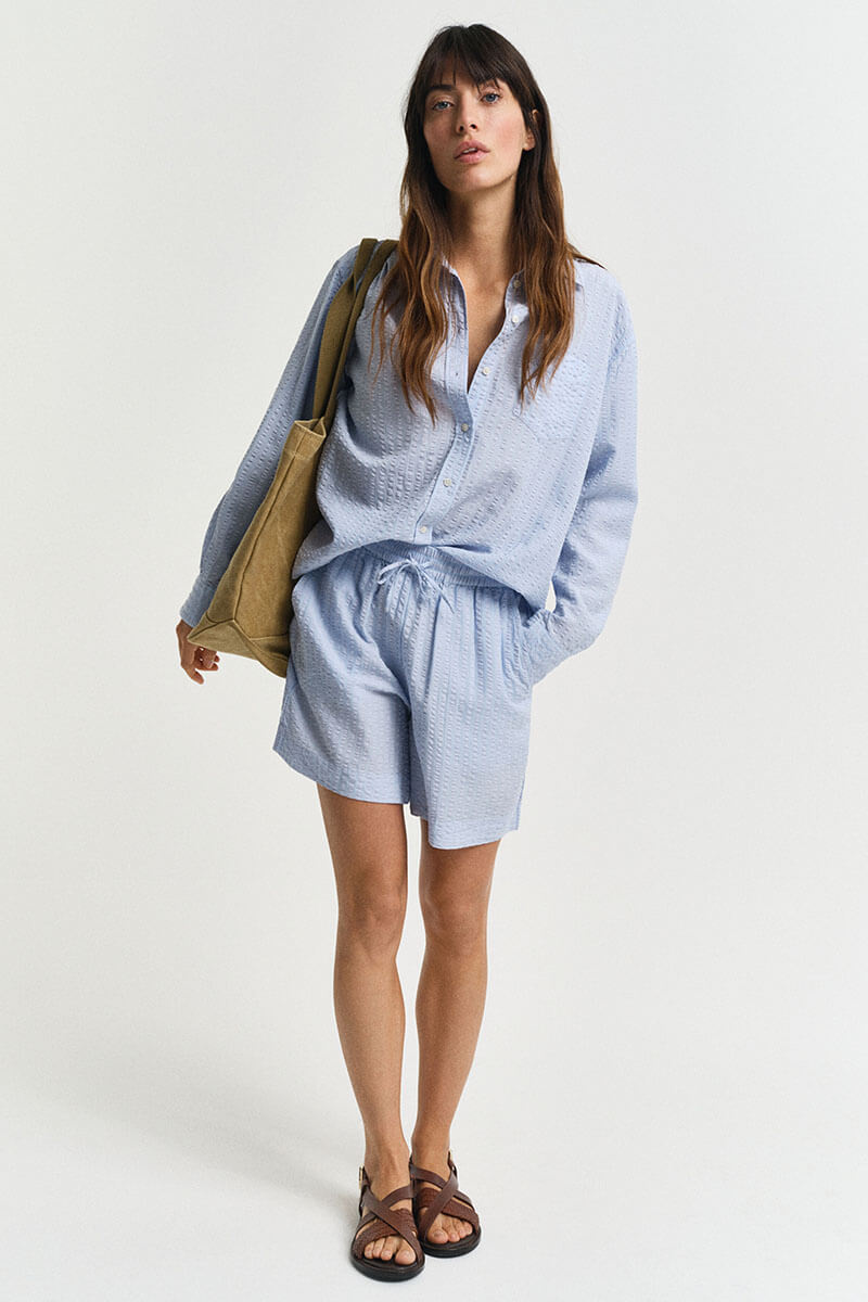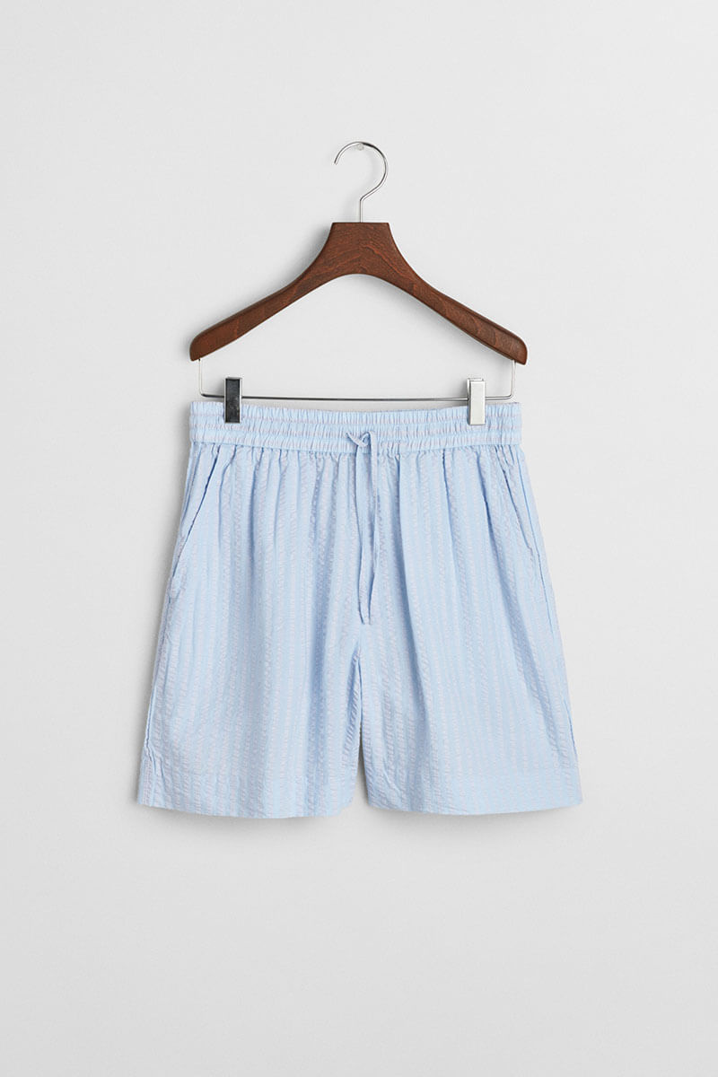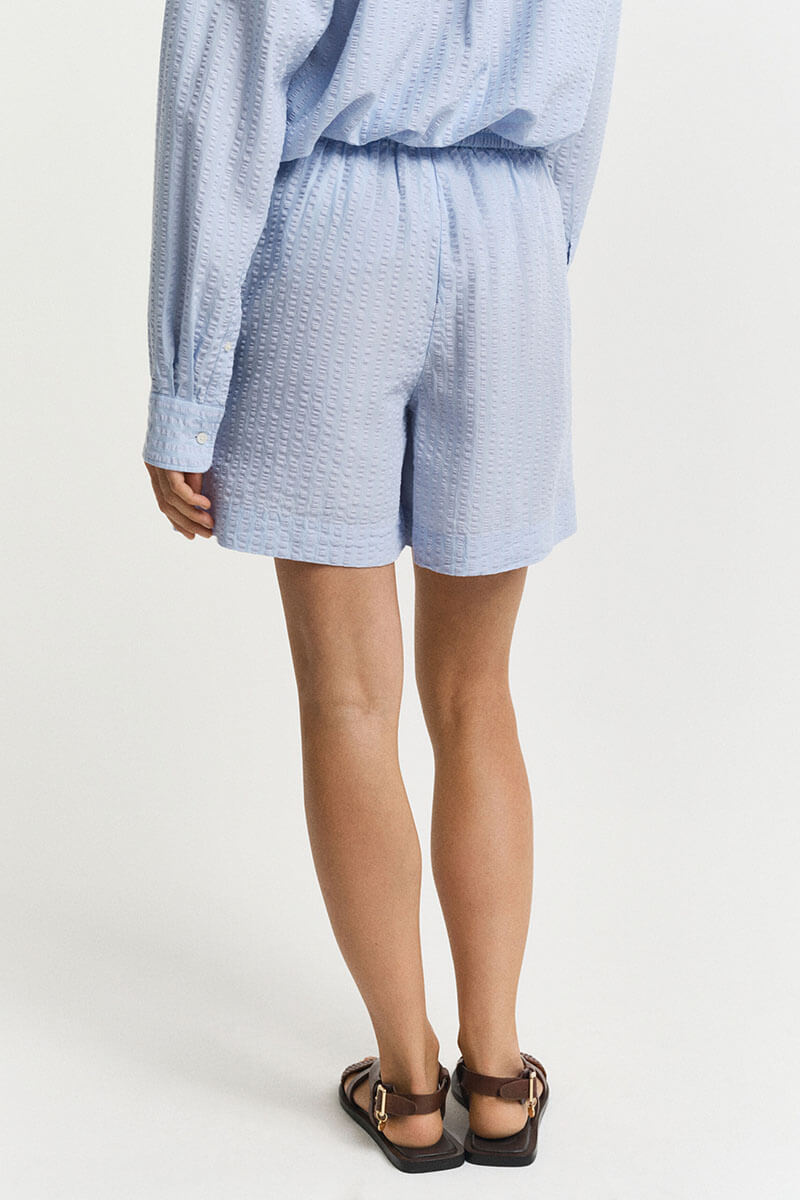 Light blue seersucker shorts that exude summer and casual elegance. The sheer structure provides both comfort and character – just as obvious with a shirt in town as with a bikini by the sea. A must-have for sunny days.Striped shorts in seersucker with drawstring at the waist, pockets at the sides, regular fit and mid waist from Gant.