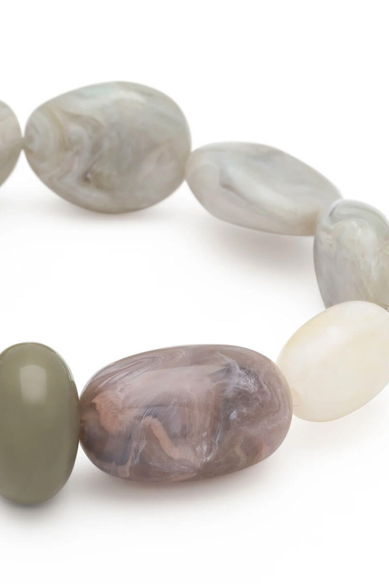 The Unique Flex Bracelet, crafted from high-quality acetate beads, combines vibrant colours and bold shapes into a stylish statement piece. The organically shaped beads are strung on a flexible band that gently conforms to the wrist for a comfortable fit.