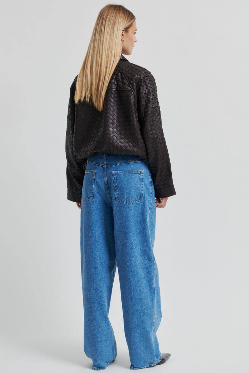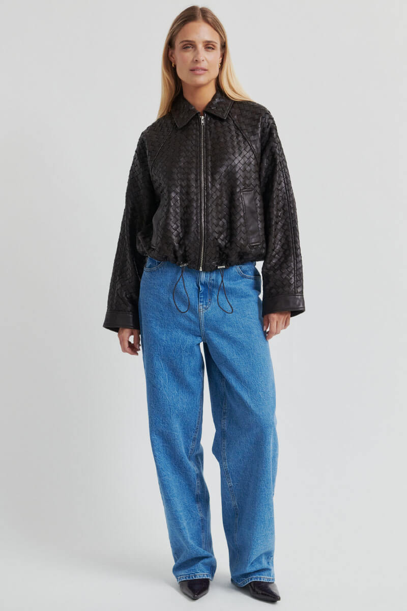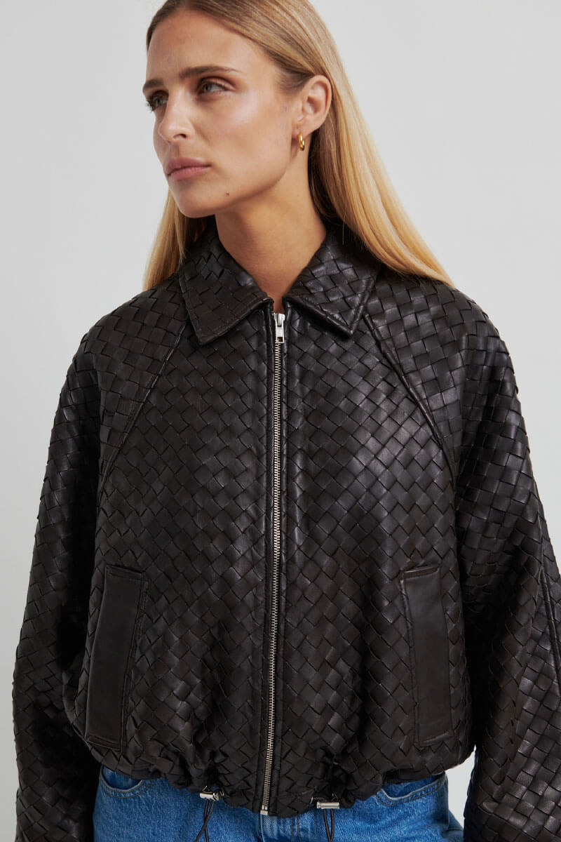 An exclusive leather jacket with a modern edge. Crafted from soft lamb leather with a woven texture, the jacket adds strong design character and elevates even the simplest outfits. Perfect to wear over knitwear or a basic top for a clean and effortlessly cool look.