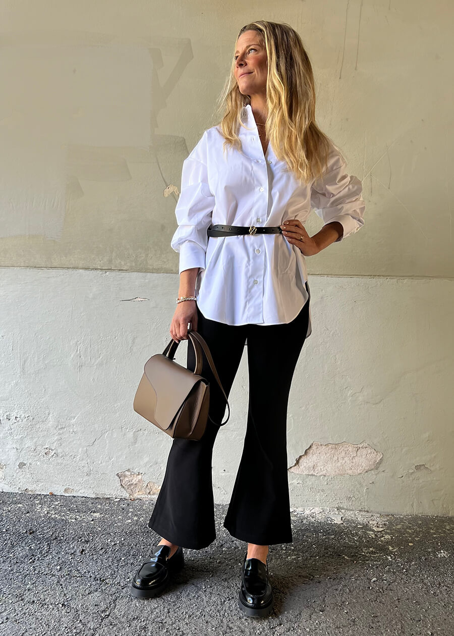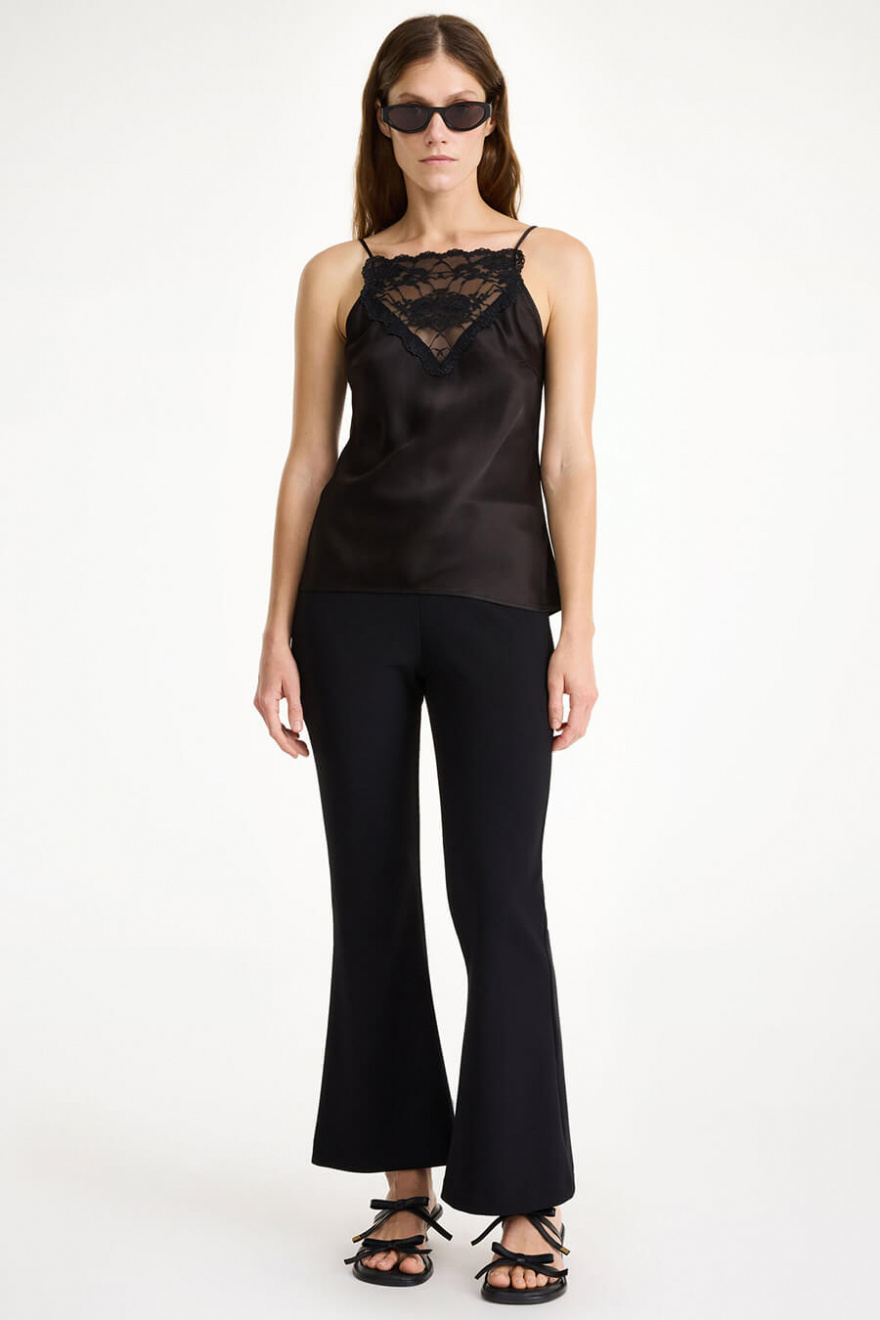 Trousers in nice stretchy material with a regular fit, wide legs and a high elastic waist from By Malene Birger.- 56% Recycled Polyester, 39% Polyester, 5% Elastane