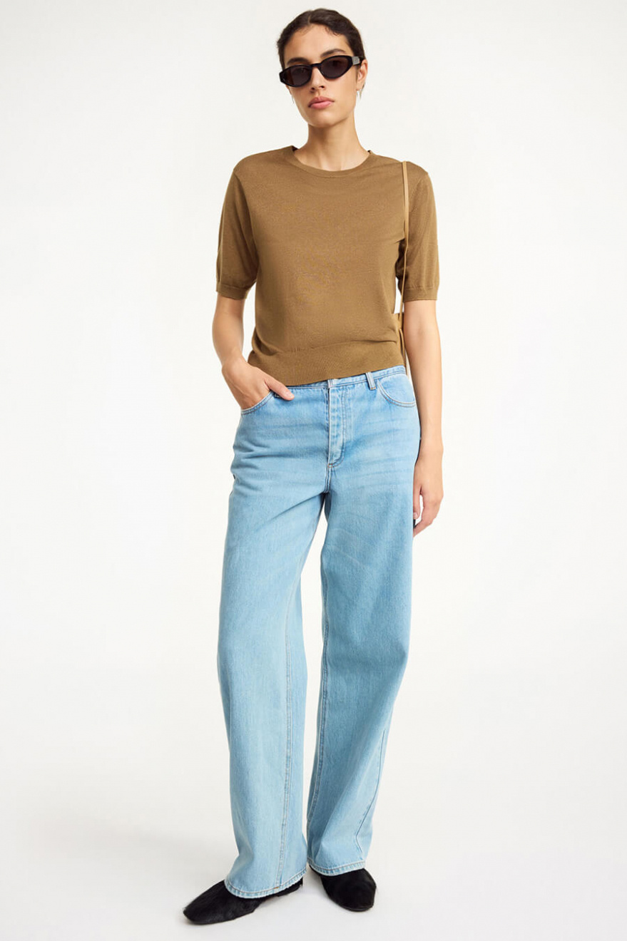 Denim that always feels right. These light jeans are the foundation of a wardrobe that exudes effortless style. Dress them up with a blazer or down with a crisp t-shirt – they look just as good every time.Jeans in organic cotton with slightly wide legs, mid waist, button closure front and losoe fit from By Malene Birger.