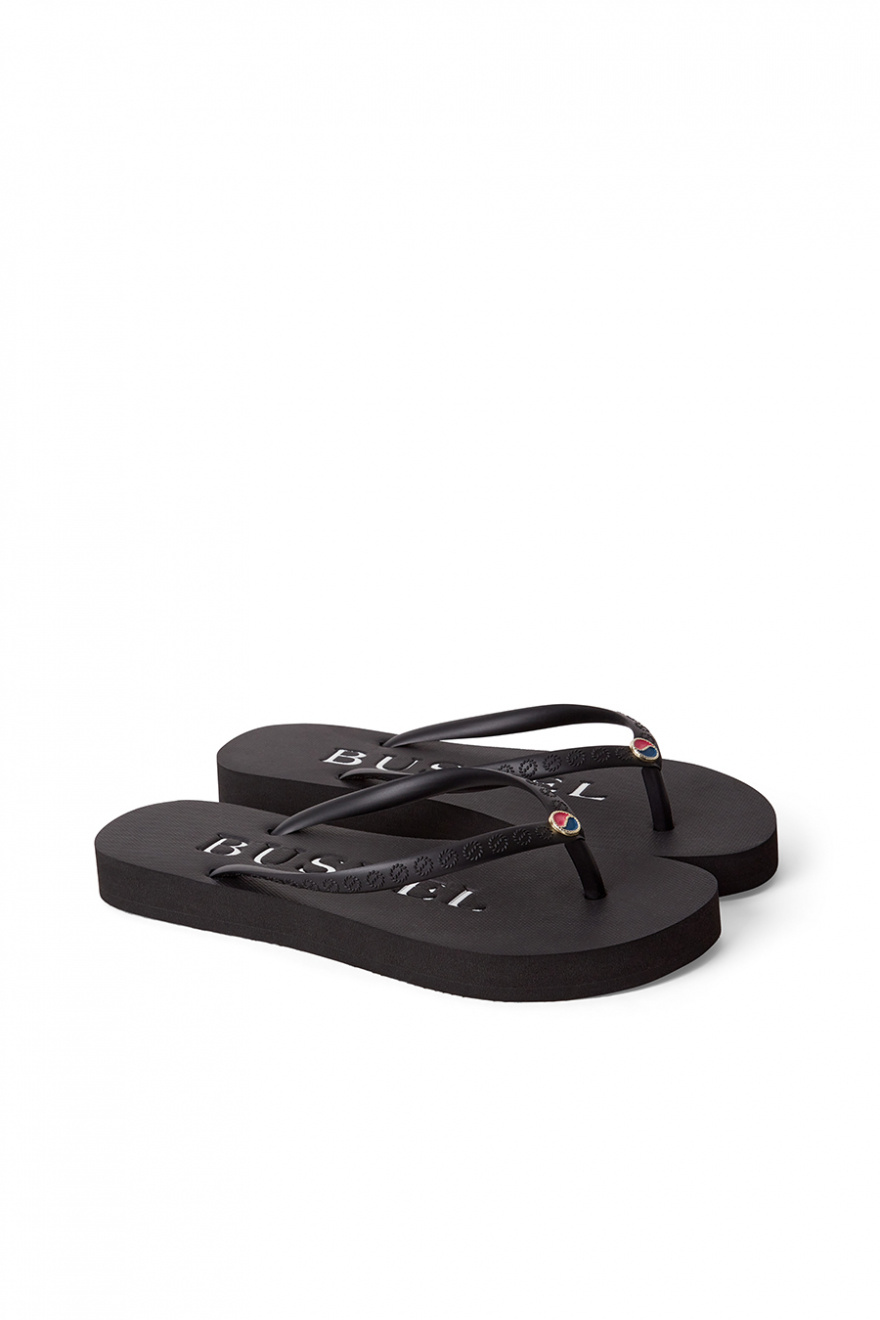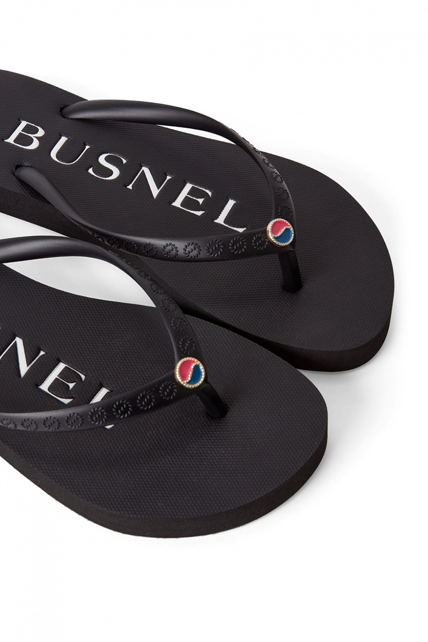 Flip flops with a logo at the top on the straps, regular fit, logo at the sole and under from Busnel.- 100% Rubber