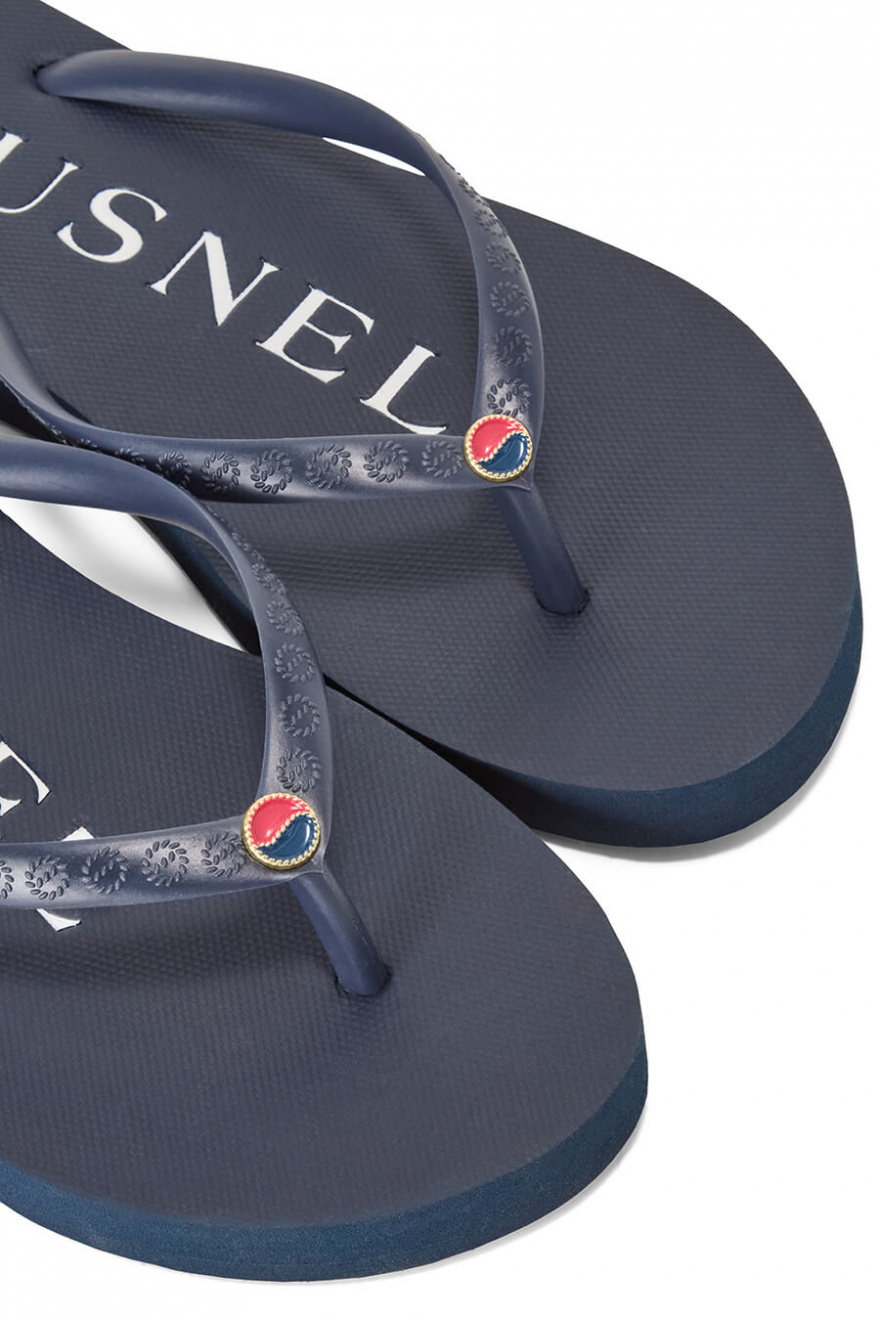 Flip flops with a logo at the top on the straps, regular fit, logo at the sole and under from Busnel.- 100% Rubber