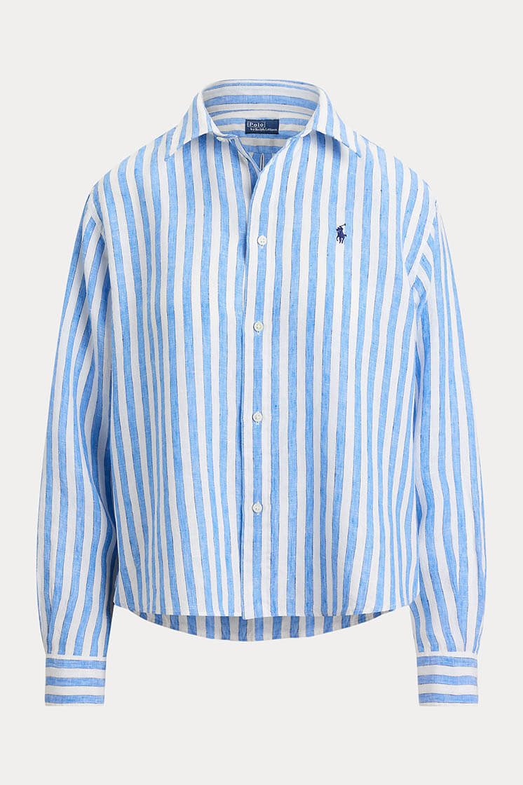Cut from breathable linen, this striped shirt by Polo Ralph Lauren has a wide, cropped silhouette that feels effortless and modern. Dropped shoulders and a relaxed shape create an easy drape, while the label’s signature embroidered Pony at the chest adds a refined finish. Wear it with high-waisted denim, tailoring or over swimwear on warm days.