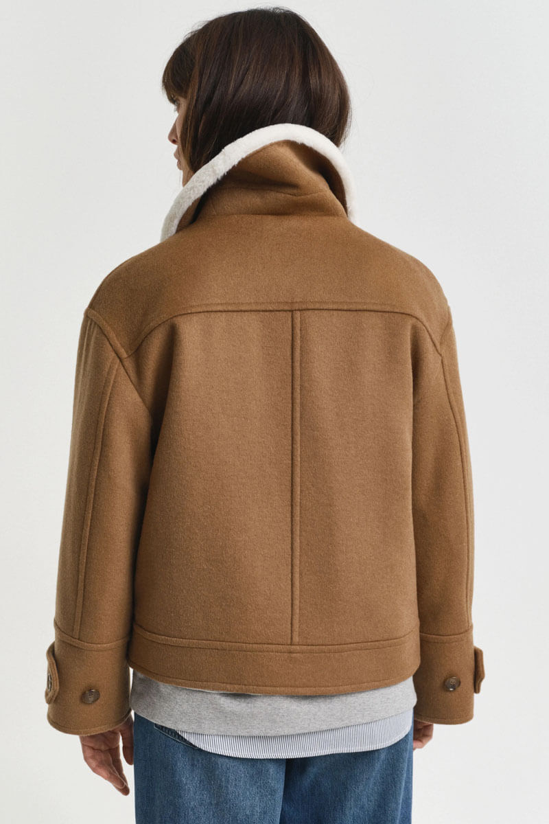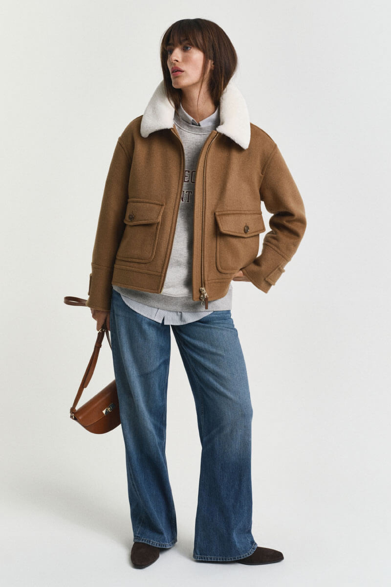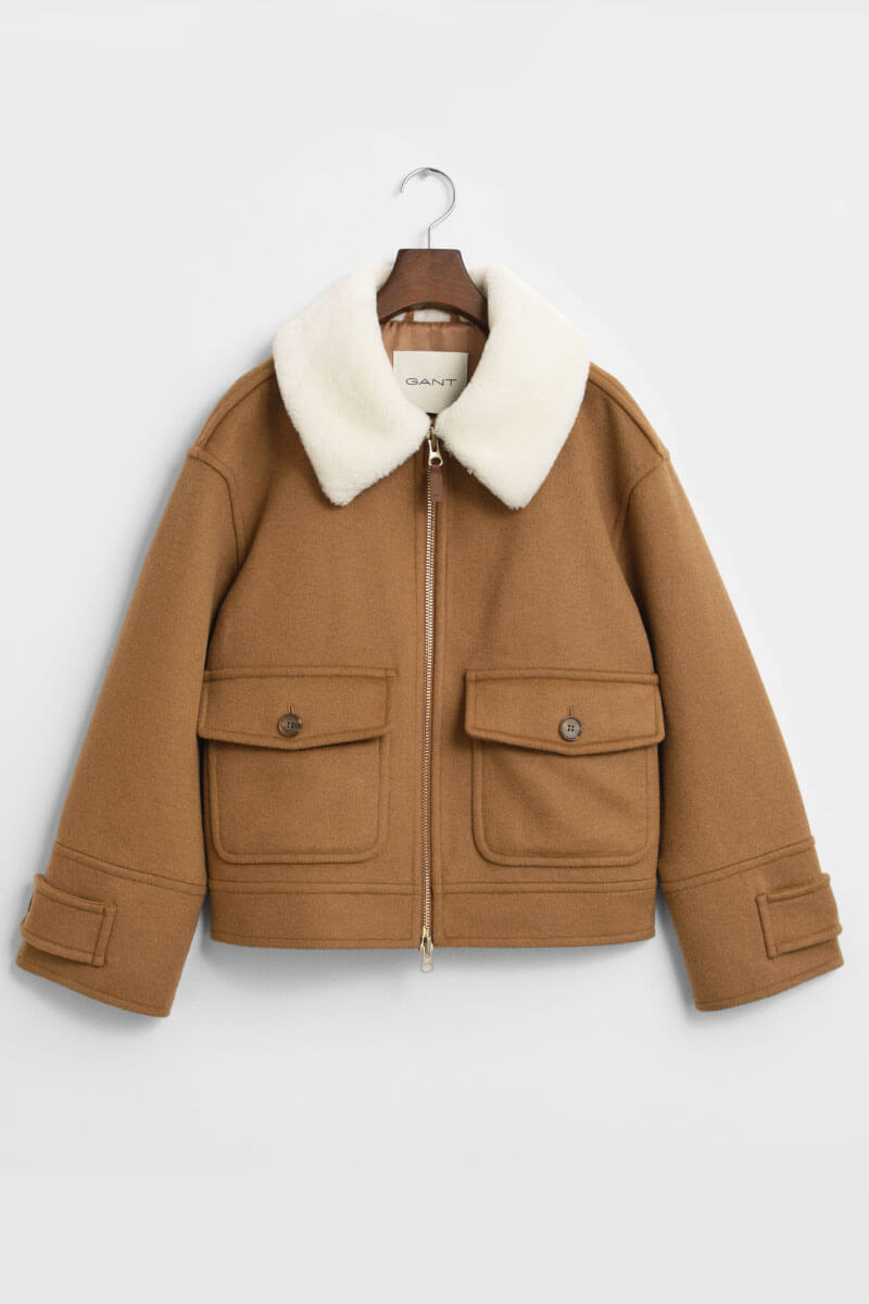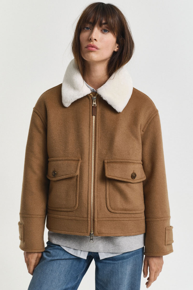A wool blend jacket with a stand-up collar and clean lines gives a sophisticated feel. Style it with loose wool trousers and boots for a modern silhouette or with blue jeans for a contrast – a timeless outer jacket with obvious style and warmth.Jacket in a wool blend with a faux fur collar, relaxed fit, front pockets, front zipper closure, dropped shoulder seams and an inner pocket from Gant.