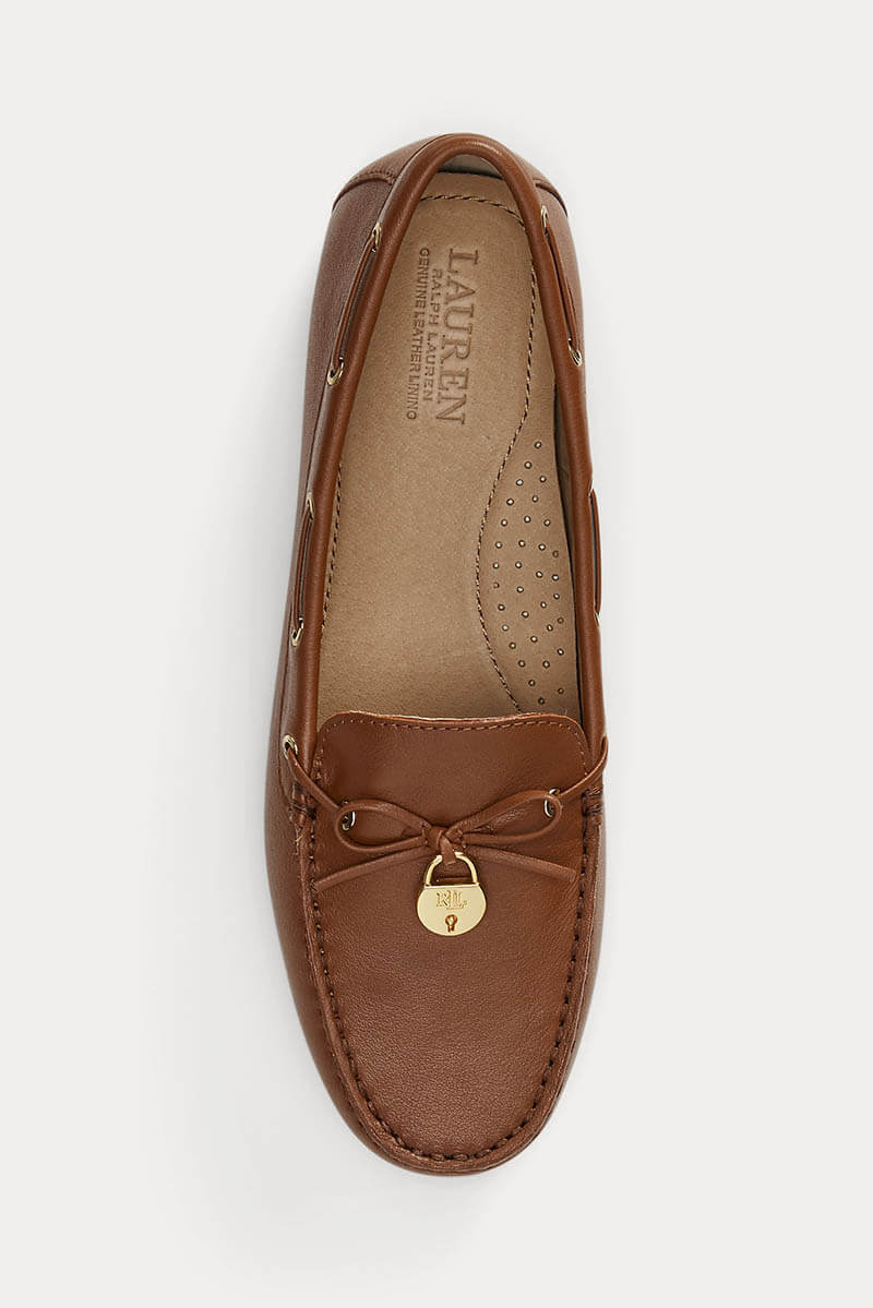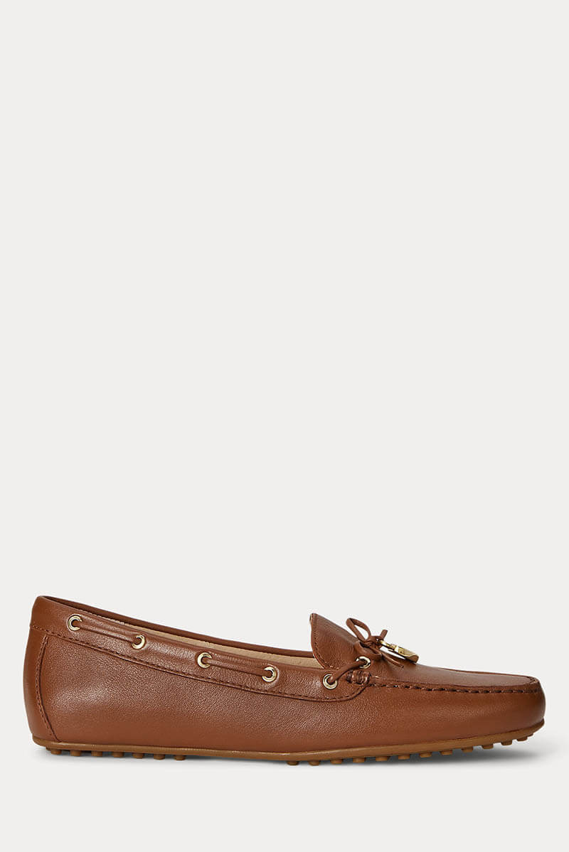 Driving loafers in nappa leather with leather lining, padded insole, decorative bow and rubber nub outsole from Lauren Ralph Lauren.- Upper: 100% Leather