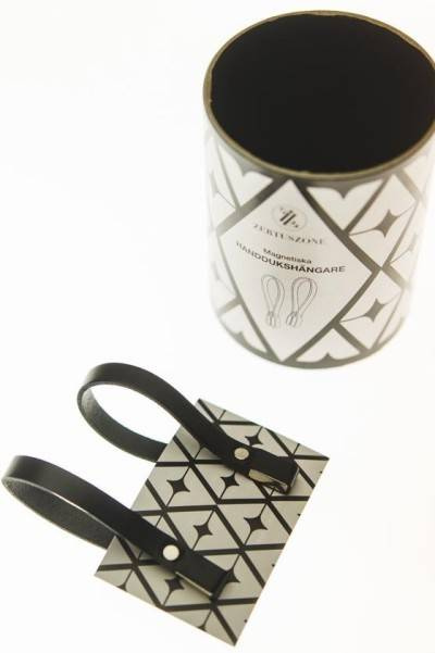 Towel rack made of leather with magnets from Zertus Zone.