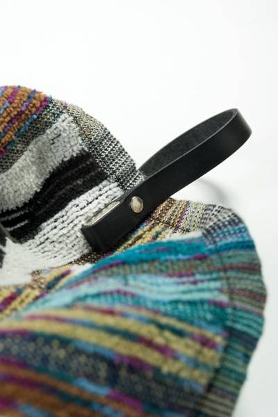 Towel rack made of leather with magnets from Zertus Zone. Ideal for Missoni towels with no hanger.