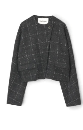 Crafted from a checked wool blend, it features a cropped, modern silhouette with side pockets and a refined button closure at the neck. Pair it with wide trousers for a cool everyday look or style it with a pencil skirt for effortless elegance.